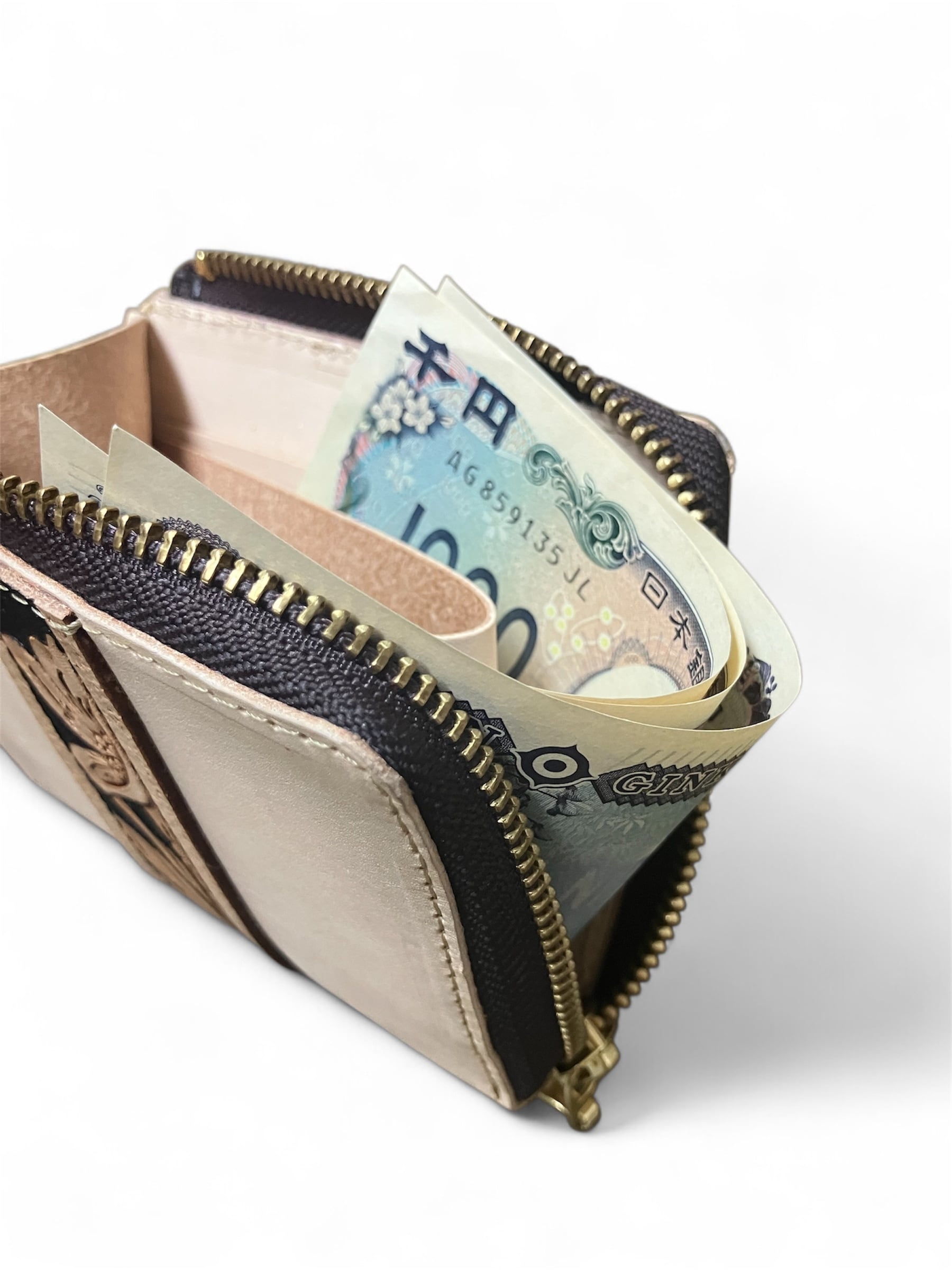 小銭・カード・お札がバランスよく収まる構造で、